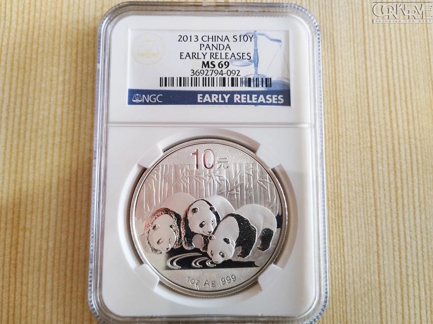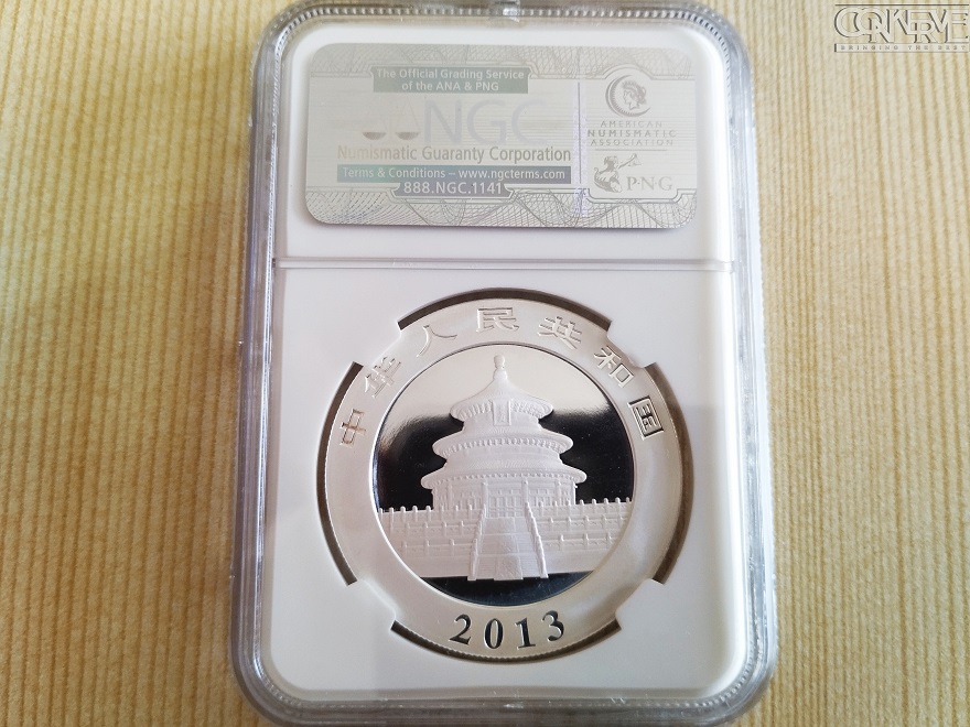 China 10 Yuan, Moneda Panda 2013 Onza de Plata Pura NGC